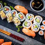 Нежнейшие роллы, вкусная пицца в городе! Для приготовления блюд используются только качественные и свежие продукты. В меню нашего ресторана взрослый, ребенок, вегетарианец и истинный ценитель еды сможет найти блюдо на свой вкус. Мы предлагаем широкий выбор роллов, от классической Филадельфии до экзотических сочетаний с манго и авокадо. Наша пицца готовится с использованием итальянской муки и сочных томатов, а начинки варьируются от традиционной Маргариты до сытной Пепперони и вегетарианской с гр