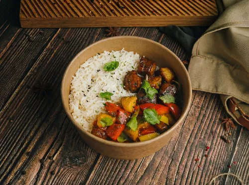 Боул с рисом и индейкой в кисло-сладком соусе