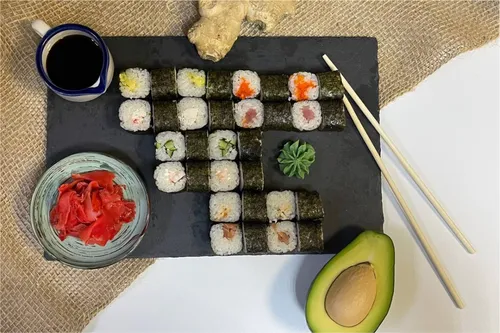 Рис, нори, лосось, огурец