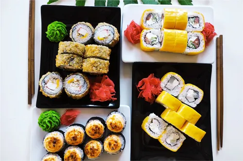 По пол порции (4 штуки) всех классических роллов