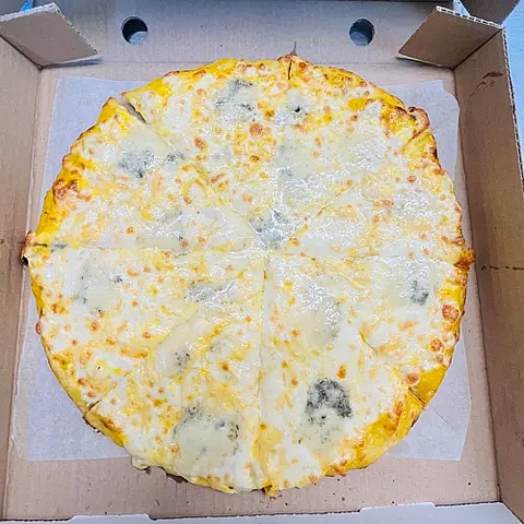 Сыр моцарелла, пармезан, дорблю, томатный соус Помодоро