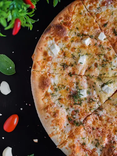 Куриное филе, шампиньоны, сыр брынза, чеснок, сыр моцарелла (32 см)