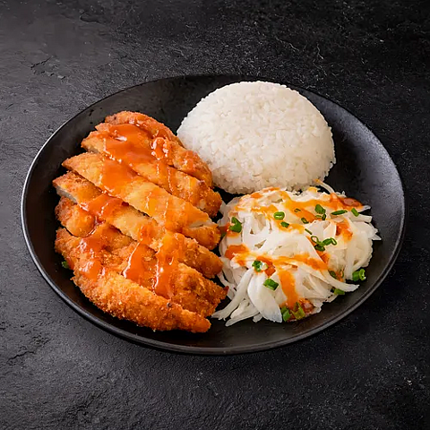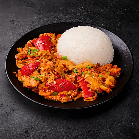 Острая жаренная грудинка с кимчи и овощами (подается с рисом) (460 гр.)