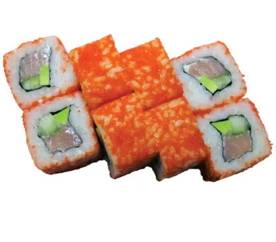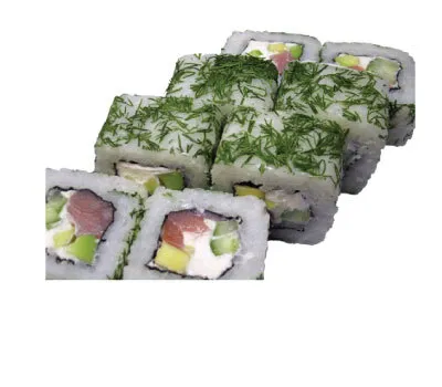 Описание: рис, нори, лосось, огурец, майонез, масага.