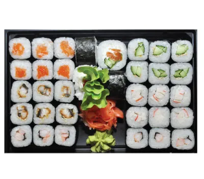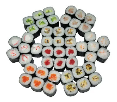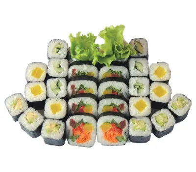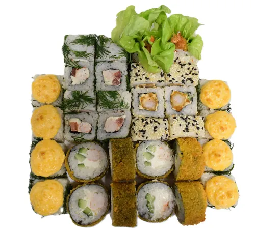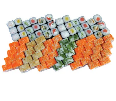 Описание: Калифорния с крабом, Чикен, Лосось-темпура, Чука-маки, Мидии-маки.