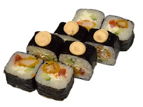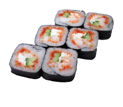 Описание: рис, нори, сыр сливочный, краб, огурец, масага.