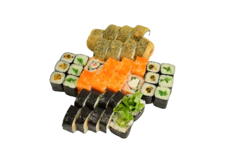 РОЛЛЫ: Микс 1, Ролл с лососем 1, Ролл с огурцом 1, Якудза 1, Милано 1, Калифорния с крабом 1, Калифорния с креветкой 1.