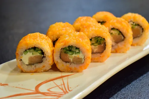 Описание: Лосось-темпура, Унаги-темпура, Чикен-Темпура, Спайси краб-темпура.