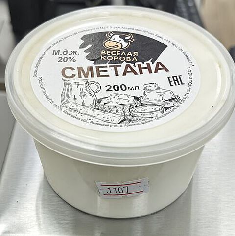 Ферма семьи Матюшкиных ( ИП Пешков), ВЕСЕЛАЯ КОРОВА МО, Раменский район, Состав: молоко цельное коровье, заквасочные микроорганизмы Пищевая ценность( в 100 г продукта) - жир - 20,0г, белок - 24,0г, углеводы - 0,31г. Калорийность - от 277 кКал Условия хранения от +2 до +6 Срок годности 5 суток Поставка 21.05.2024, до 26,05.2024 - 5 шт Остаток на 25.05.2024 - 2 шт