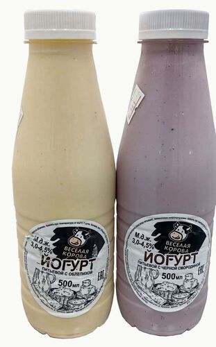 Ферма семьи Матюшкиных ( ИП Пешков), ВЕСЕЛАЯ КОРОВА МО, Раменский район, Йогурт питьевой с облепихой Состав: молоко коровье, закваска,концентрат морса из облепихи Пищевая ценность( в 100 г продукта) - жир - 3,2г, белок - 3,2г углеводы - 13,4 Йогурт питьевой с черной смородиной Состав: молоко цельное, морс концентрированный из черной смородины (черная смородина, сахар , вода питьевая) заквасочные микроорганизмы Пищевая ценность( в 100 г продукта) - жир - 3,6г, белок - 3,6г углеводы - 14,5 Калорийность - 98кКал, Условия хранения от +2 до +6 Срок годности 7 суток