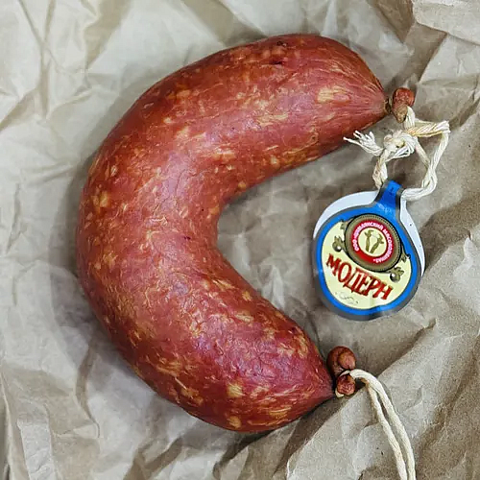 Колбаса "Модерн" создана для настоящих ценителей качественного мяса. В её основе - говядина высшего сорта, дополненные хребтовым шпиком. Именно этот баланс постного мяса и сочных вкраплений сала делает вкус колбасы особенно насыщенным и гармоничным.