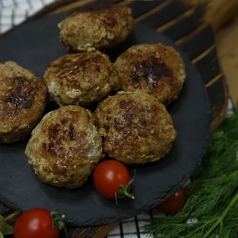 Состав: Мясо птицы, филе куриное, мука пшеничная, яйца куриные, лук репчатый, соль поваренная пищевая, перец черный молотый.