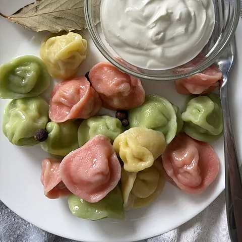 Пельмени цветные из цыпленка Пастушьи, кг