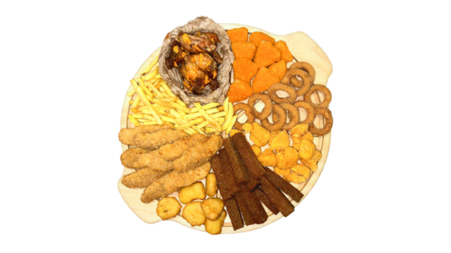 Оооооочень биг пивное-комбо! 9 стрипсов, 15 наггетсов, картофель-фри, 10 луковых колечек, 7 крылышек с соусом который вы пожелаете, порция гренок и 3 соуса на выбор!