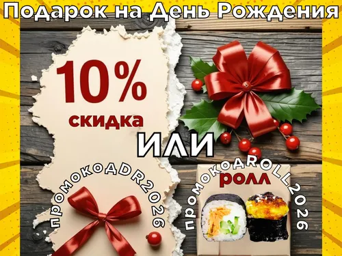 именинникам 10 % скидка или "Гриль" ролл в подарок
