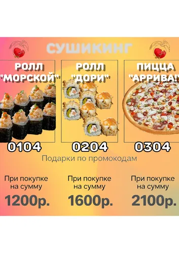 На 1 200 руб. → ролл «Морской» (промокод 0104)