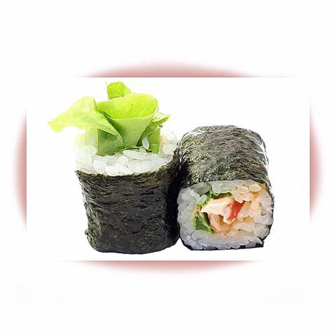 В состав сходит: рис, нори, краб (сурими), соус спайси и салат