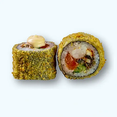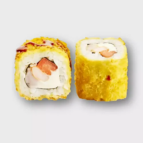 Состав : Жаренный ролл с креветкой ,сливочным сыром без ЗМЖ , соусом "Спайси" и салатом "Чука" , немного острый , не приезжает горячим