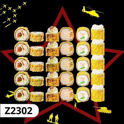 роллы : запеченная калифорния + спешл+ролл звезда + калифорния с креветкой + гунканы запеченные с крабом 3 шт ( краб микс )