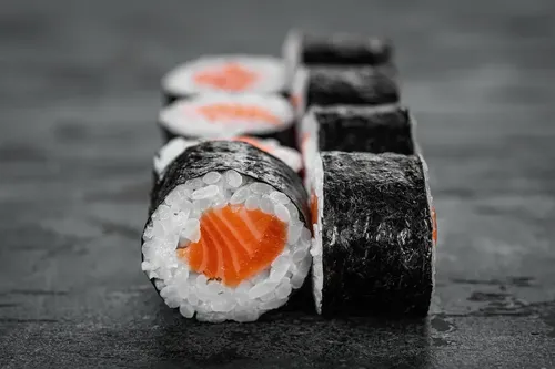 В состав сходит: рис, нори, угорь, соус унаги и кунжут