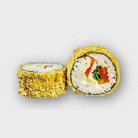 Состав : икра масаго, снежный краб, огурец и соус манго - Чили ,сухари панко , кляр