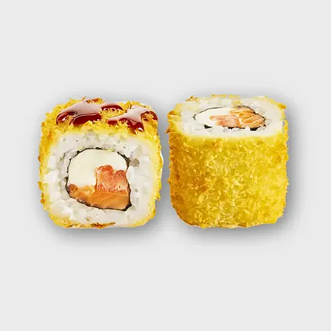 Состав : форель с/с, сыр творожный, соус унаги и огурец, кляр и сухари панко