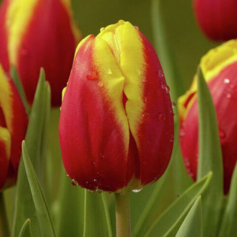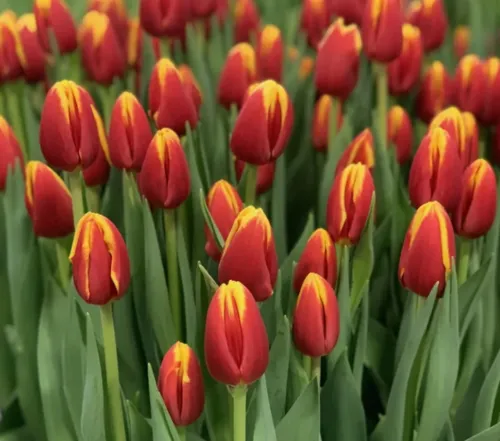 Тюльпан «Дэнмарк» - очень красивый сорт с уникальными бокаловидными цветами. Бутоны с диаметром до 5 см очаровывают своей окраской – лепестки насыщенно-красного цвета обведены яркой желтой каймой. Цветы безупречно держат форму, и даже после срезки долго не теряют своей привлекательности. Растение используется в декоре альпинариев, рокариев, клумб, парков и скверов.