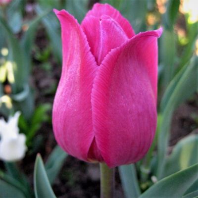 Тюльпан Триумф Барселона (Barcelona) – относится к классу Триумф. Многолетнее травянистое растение, семейства Лилейные. Изящный цветок с ярким окрасом и легким сладким ароматом – станет настоящим украшением любого уголка вашего сада, а также будет роскошно смотреться в букете. Сорт активно используется в ландшафтном дизайне – для оформления парковых зон, он прекрасно сочетается с другими цветущими культурами. Высота растения около 60 см. Стебель упругий, крепкий. Листовая пластина крупная, остроконечная, насыщенного зеленого оттенка. Сорт среднецветущий, период цветения достаточно продолжительный, приходится на конец апреля – начало мая. Каждый стебель формирует один бутон, высотой примерно 8 см. и диаметром около 6 см. Форма цветка бокаловидная, отдаленно напоминает бочонок. Лепестки гладкие, маслянистые, с ярким малиново-розовым окрасом, сердцевина – кремового оттенка. Срезанный цветок будет прекрасно держаться в вазе до 10 дней.