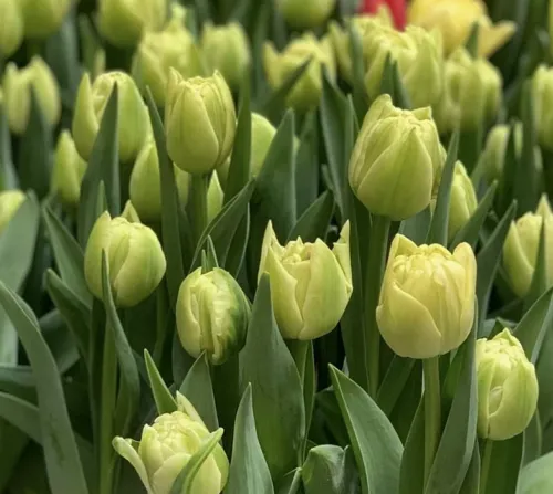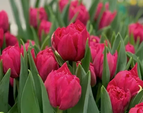 Тюльпан Адоре относится к группе супер-тюльпанов “Двойной Эффект”. Этот тюльпан имеет крупный, пышный бутон со множеством лепестков, тюльпаны с такими бутонами называют махровыми.