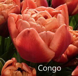 Тюльпан махровый ранний Конго - сорт с крупными бутонами, состоящими из множества лепестков. Имеет схожесть с пионами.