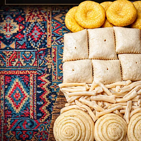 Традиционное блюдо кумыкской кухни, представляющее собой ромбики из пресного теста, отваренных в мясном бульоне.