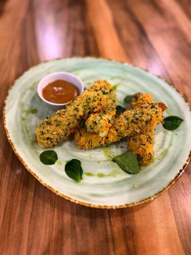 Моцарелла, сухари панко, мука, петрушка, соль, яйцо.