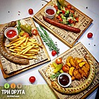 "Три друга" - это кафе-гриль и доставка вкусной еды. Блины классические и с начинками. Европейская кухня и классическое гриль меню.