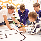"Роботрек" занимается комплексным развитием детей в возрасте от 4 до 16 лет в области IT-технологий. В клубе ребенок получает возможность профессионально заняться робототехникой, программированием и узнать внутренние строение многих механизмов на уроках DIY-изобретений.