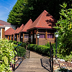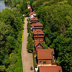 Чистый воздух, напоенный ароматом хвои. Река, живописная территория с цветами, зелеными лужайками и декоративными водопадами. Уникальный эко-комплекс расположен в глубине леса на берегу реки Дёма.