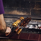 Шашлык, который готовят на Ваших глазах, можно отведать в зале, а также заказать его домой.
