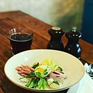 Планируете пообедать в ресторане "The Kook"? Закажите нежный салат с языком.В составе помидоры черри, маслины, сыр пармезан. Все это заправлено домашним майонезом. Наш красивый интерьер способен погрузить в особую атмосферу, способствующую аппетиту и повышению настроения! Большие порции Вас приятно удивят.