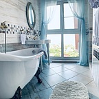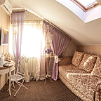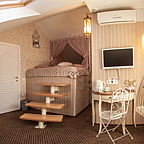 Авторский дизайн интерьеров гостиницы не оставит равнодушным. Каждый номер оформлен в индивидуальной стилистике — от интерьера Чикаго 30-х годов до французского прованса! В гостинице 7 номеров полностью оснащенных всем необходимым уровня VIP — от кондиционеров, спутникового телевидения и мини-бара до джакузи с гидромассажем и хромотерапией! Из большинства номеров открывается потрясающая панорама на город и Воронежское водохранилище.