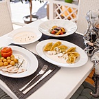 Итальянская кухня и светлый интерьер создают ощущение легкости. Кафе стилизовано под уютное итальянское патио, утопающее в зелени, с яркой мебелью и множеством очаровательных деталей.