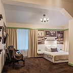 Номера оборудованы всем необходимым для комфортного проживания: телевизор, холодильник, кондиционер, тапочки, халаты, средства личной гигиены.
