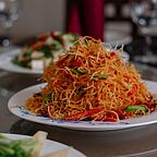 В ресторане «Вечерние огни» Вы можете отметить любой праздник или знаменательное событие: день рождения, юбилей, корпоратив или свадьбу. Роскошный интерьер зала выполнен с безупречным чувством вкуса, атмосфера наполнена особой торжественностью китайского праздника, что сразу создает соответствующее настроение. Пространство зала организовано с учетом всех требований для максимально комфортного проведения мероприятия. Менеджеры ресторана очень внимательно подходят к рассадке присутствующих. Они предлагают различные варианты рассадки в зависимости от количества гостей, от формата праздника, учитывая при этом Ваши пожелания. Наш персонал будет обслуживать Ваш банкет на высшем уровне. Наши повара смогут приготовить для вас изысканные блюда китайской кухни – подача будет роскошной и банкетно-праздничной.