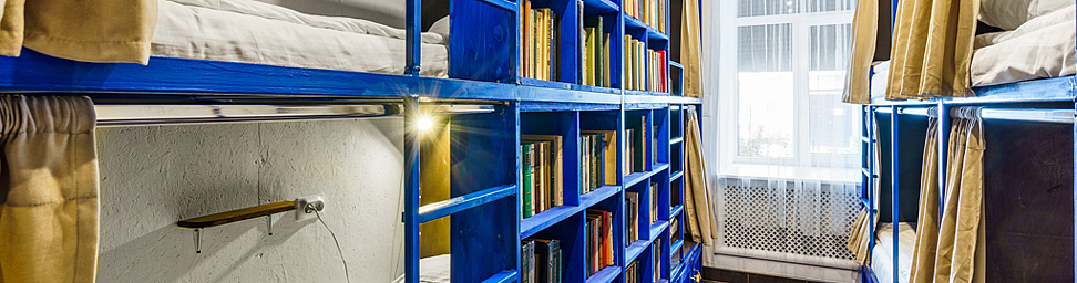 У нас есть индивидуальные и общие номера, включая номер только для женщин и отдельный номер со своим санузлом (любимый номер нашей команды!). В общих номерах у вас будет личный закрывающийся шкафчик, в который помещаются два больших чемодана, и общий платяной шкаф, где можно развесить на вешалках и разложить на полках одежду.