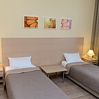 Светлые и уютные номера оформлены в современном стиле, обставлены удобной мебелью и оборудованы системой кондиционирования. Гости отеля могут воспользоваться дополнительными услугами побудки к определенному времени, прачечной (стирка и глажка белья), вызова такси и заказа завтрака.