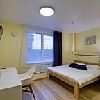 Каждый наш номер оформлен в индивидуальном стиле и оснащен качественной мебелью и сантехникой. Во всех номерах располагаются большой стол и удобное кресло-стул, предназначенные для комфортной работы. Для хорошего сна наших посетителей все номера имеют шумоизоляцию и светонепроницаемые шторы. В ванных комнатах есть фен и все необходимые гигиенические средства. Существует специальная зона хранения багажа.
