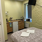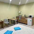 В апартаментах - студиях есть все важные удобства: бесплатный Wi-Fi, кухня, холодильник, микроволновая печь, чайник, посуда, собственная ванная комната. И что самое главное - комфортное спальное место, где путешественник сможет отлично выспаться. А также большая бесплатная парковка с видеонаблюдением во дворе здания.