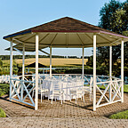 На территории загородного клуба располагаются: банкетный зал, банный дом, гостевой дом, беседка на воде, беседка летняя открытая, детская площадка, озеро с пляжем и рыбой, пруд с пляжем и спортивной площадкой, мангальные зоны для самостоятельного приготовления еды, собственная парковка на 50 автомобилей.