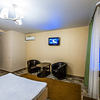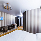 Уютные номера полностью подготовлены для проживания. Среди удобств есть собственная ванная комната, телевизор, чайник, халат, тапочки и средства гигиены. Часть категорий обустроены комфортабельным гостиным уголком.
