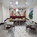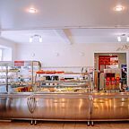 Наше кафе работает в режиме столовой – имеется линия раздачи, для быстрого и качественного обслуживания. Но мы не столовая, в её чистом виде. Мы стараемся, чтоб нашим гостям было максимально удобно. Гость делает свой выбор на линии раздачи, сразу оплачивает, присаживается, кушает, а посуду и подносы мы убираем сами.