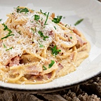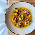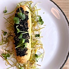 В меню собраны международные кулинарные шлягеры в вольной переработке, есть заметный акцент на гриль — говядину, баранину и птицу, которые готовят в специальной дровяной печке Josper.