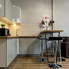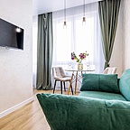На первом этаже нашего здания, находится уютный ресторан "Стейк Хаус", там можно вкусно позавтракать, пообедать, поужинать. В штате апарт-отеля - квалифицированные горничные и администраторы.